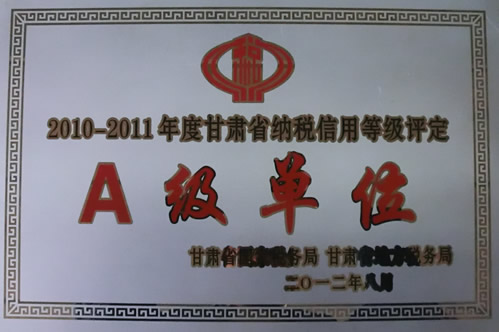 近日,蘭州真空設備有限責任公司獲得由甘肅省國家稅務局、甘肅省地方稅務聯(lián)合頒發(fā)的“2010-2011年度甘肅省納稅信用等級評定——A級單位”稱號。